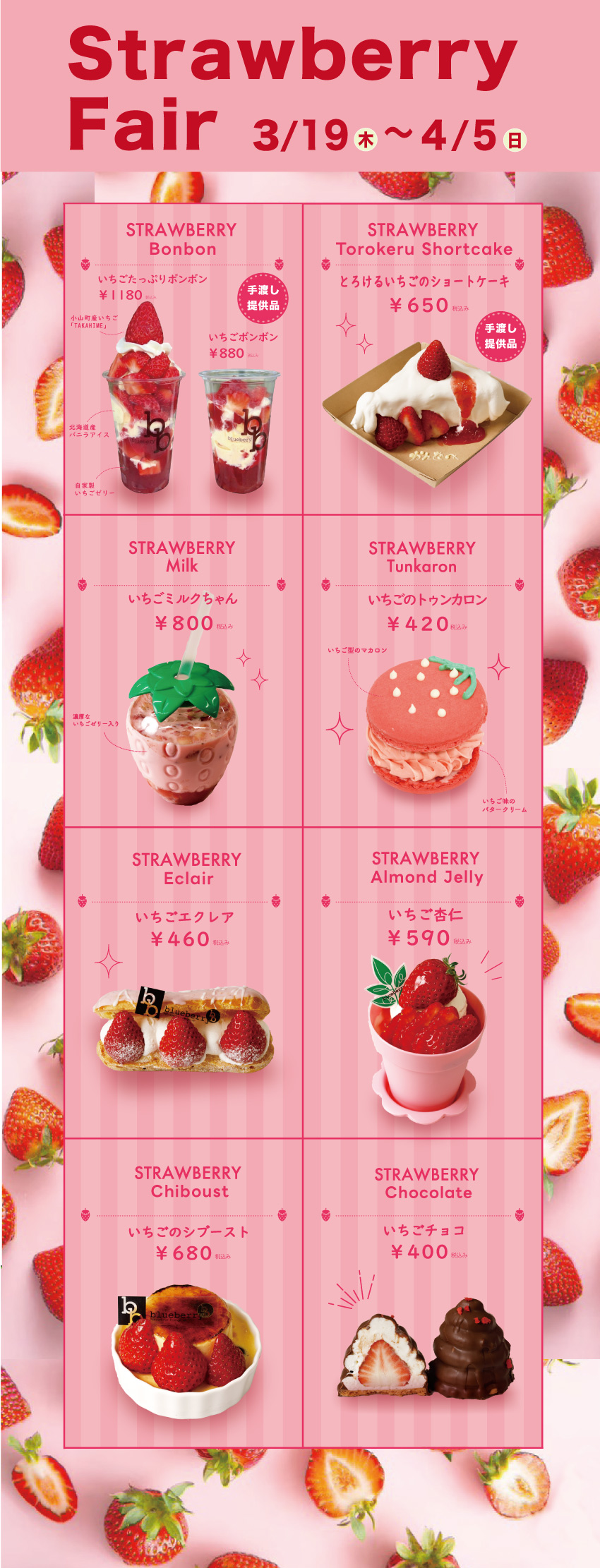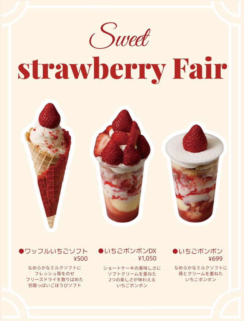 毎年大好評の「いちごフェアー」を開催します!限定ケーキもチェックしてくださいね!