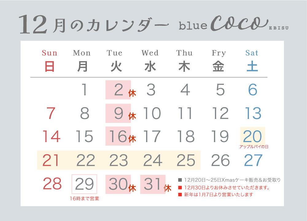 | 定休日のお知らせ |